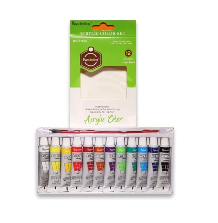 KeepSmiling Acrylic Colour 12ml 12 Shaes,Keep Smiling Pack of 12 tubes x 12ml in each tube Excellent quality Easy to use Best for artist 12 vibrant and rich pigments in metal tubes that blend smoothly.